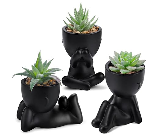 For a unique decor element, these plant pots feature figures in different poses. Each one is filled with an artificial succulent — so they won’t ever wither or wilt — and they’re compact enough to place almost anywhere in your house. They come in three different styles in the listing.