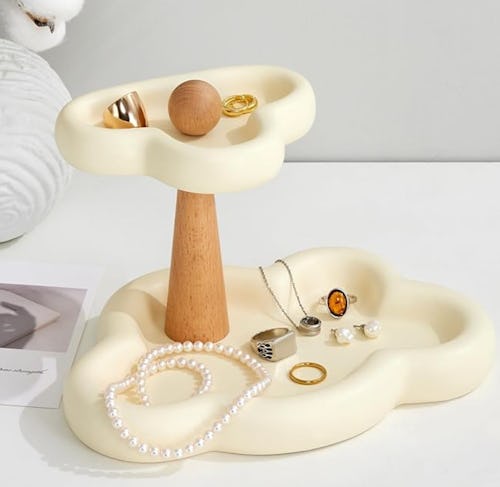 Use the two tiers of this ceramic dish for jewelry, spare change, or other small items that you don’t want to lose track of. Each tier has a whimsical cloud shape with raised edges so nothing rolls off. The nonslip base ensures it won’t budge.