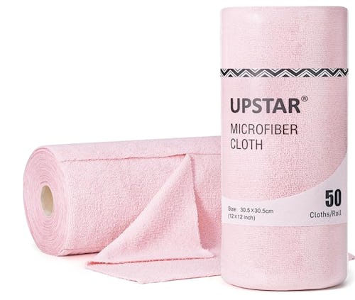 Dramatically cut down on your paper towel use (saving money in the long run) and switch over to these microfiber cleaning cloths. They are absorbent, lint-free, and soft, and they can be used wet or dry. Fifty cloths come on the roll, and they’re machine washable and reusable.
