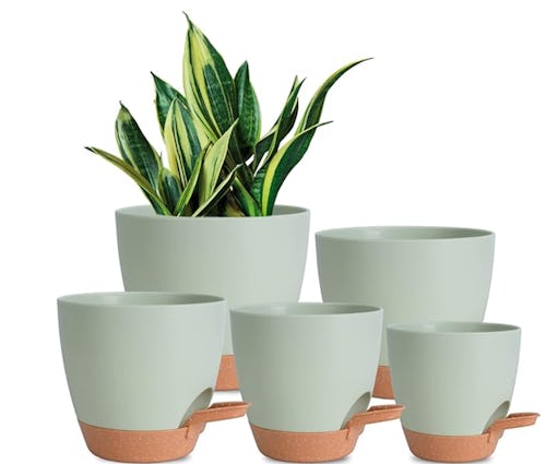 Have a tough time keeping your plants hydrated? These five plant pots have a self-watering design. Pour water into the lip on the side (it’s held in a reservoir), then when your plant needs water, it’ll be absorbed into the soil through cotton ropes.