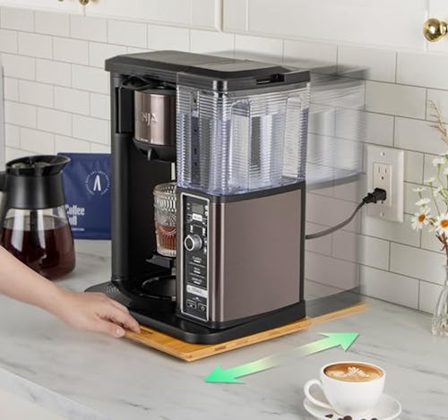 Place bulky, heavy kitchen appliances — like your coffee maker, air fryer, or slow cooker — on this bamboo tray, then slide it forward whenever you need to use them. The tray is constructed from three layers of bamboo with sturdy wheels for sliding. It comes in various dimensions in the listing.