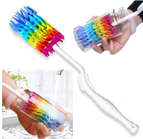 Regular cleaning brushes fall apart quickly, but this brush cleaner is made from silicone to last. It rotates 360 degrees for an all-around clean. And the long handle allows you to reach deep, particularly into large tumblers or water bottles.