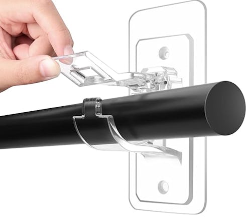 For renters or if you don’t want to drill into your walls, these adhesive curtain rod holders are the ideal product to hang curtains damage-free. They stick securely in place (but have holes for screws if you want that), adjust to accommodate different rod diameters, and support up to 20 pounds. These holders are transparent, but colored options are available in the listing.
