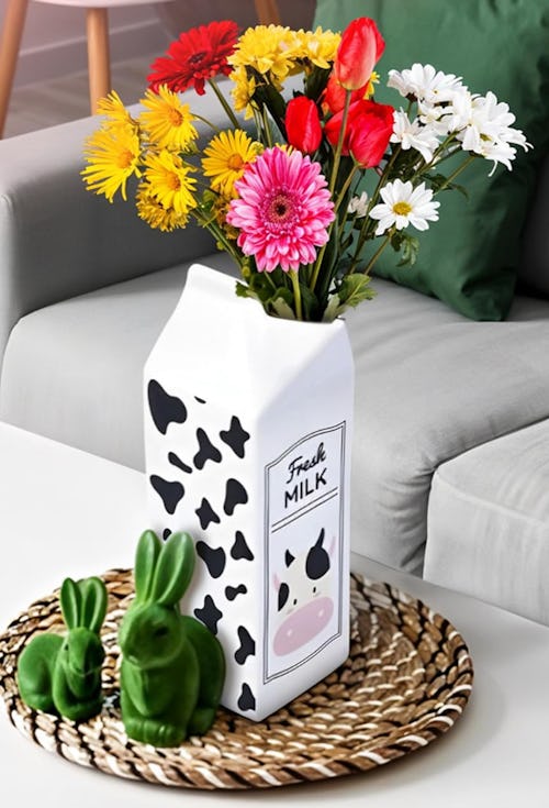 Embrace the farmhouse whimsy of this milk carton vase by filling it with a few blooms and setting it in your kitchen. It looks just enough like a real milk carton to bring a smile but, upon closer inspection, reveals a sense of artistry and whimsy that will charm everyone. “It's bright and fun to look at and contemplate,” said one reviewer. “They take an ordinary thing and make it kinda weird.” There are three options.