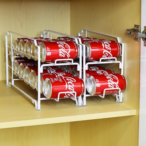 How much time do you waste, moving food around the fridge trying to locate a cold canned beverage? Set this can dispenser on a shelf and load it from the top. It will push the cans to the front so you can open the door, grab a drink, and be on your way. “This is simple yet genius!” said one reviewer. “When you remove a can the next one rolls up front.” It comes in four colors and two sizes.