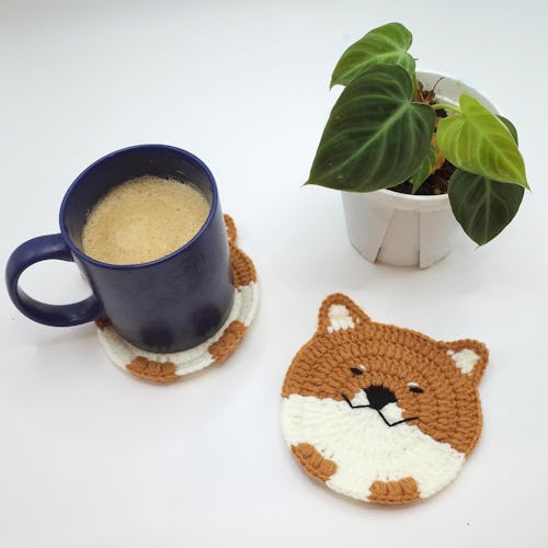 Set your beverages on these adorable dogs and they will stare up at you as you enjoy your tea or cocktail. Designed by crochet, the cute dogs absorb moisture, protect furniture from heat, and look cute doing it. This is a set of two.