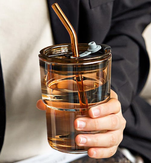 Pour your cocktail, iced coffee, or wine into this insulated glass cup, and don’t worry that you will spill on your shirt or the carpets. The lid is secure. The cup is spill-proof. And your beverage will stay cold or hot in that double-wall insulation. “I literally get compliments on this tumbler every time I use it. It’s a great size, super durable, and easy to wash,” said one reviewer. It comes in seven colors.