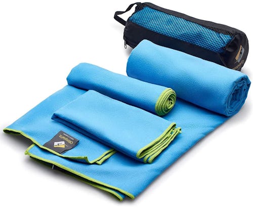 Don’t be fooled by the light feel of these three microfiber towels — they can absorb up to four times their weight so that every drop of sweat is quickly removed from your skin. They’ll also dry quickly and block odor so you feel fresh all day. Use the included mesh bag to bring them on all your adventures. The set includes towels in three sizes to suit a variety of uses and they’re available in a few colors in the listing.