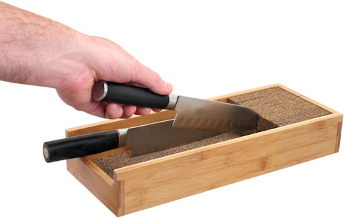 To keep your blades sharp, you’ll want to keep them in this bamboo knife block. It has a cork and rubber composite that can hold up to 12 knives without causing any dulling. “It fits perfectly in my kitchen drawer and keeps my knives from getting dinged or damaged,” wrote one fan.