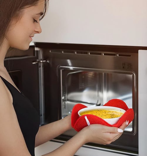 The impressive 4.8-star overall rating that these microwaveable dish huggers have earned comes from their ability to keep hands safe — even when handling super hot bowls. They can also be used to hold an icy bowl of ice cream. They come in a pack of four in various colors in the listing and they can be cleaned in the washing machine as needed.