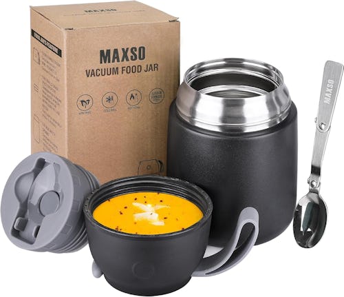 This insulated 17-ounce thermos will simplify taking lunch on the go since it has a built-in bowl and comes with a spoon. You can fill the 17-ounce container with your favorite food and it will keep it hot for up to 12 hours or cold for up to 24 hours. It also comes with an airtight lid to keep everything fresh.