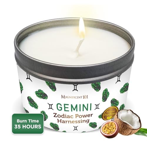 Magnificent 101 Gemini Zodiac Sign Candle – Scented Natural Soy Wax – Make Great Birthday or Holiday Gifts for Horoscope and Astrology Fans – 6 oz Tin Holder Ideal for Men’s and Women’s DĂ©cor Styles