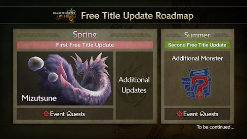 The update will come with tweaks to the core gameplay, new event quests, and the return of the fan-favorite Leviathan-class monster Mizutsune. In the summer, another title update and monster which Capcom has not yet revealed will be added free of charge. Capcom promised more updates will follow its plans for the summer.