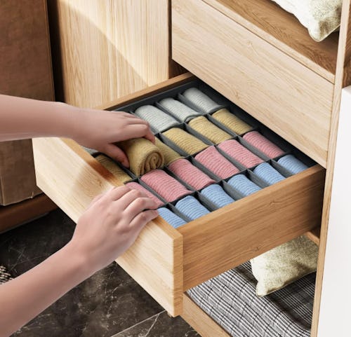 This pair of drawer organizers contain 48 cells between them that can hold socks, bras, underwear, ties, and more. Even better, they fold flat when not needed, but won’t fall down during use either — a zipper keeps them secure when you want them expanded.