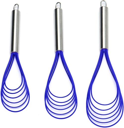 Using a whisk on nonstick pots and pans can damage their delicate surfaces, but this three-pack of whisks features silicone loops that prevent this issue. The set comes with a 10-, 11-, and 12-inch flat whisk that are great for blending, mixing, and beating various foods with ease.