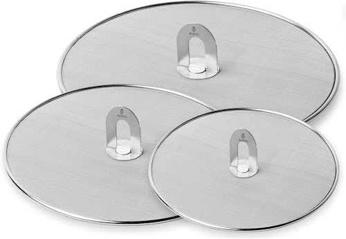 Prevent oil or hot water from burning you or hitting the walls with this set of three splatter screens. They measure 10, 11.5, and 13 inches in diameter and can serve so many other uses in the kitchen, too. Use the to steam vegetables over hot water, as a cooling rack, or to strain foods.