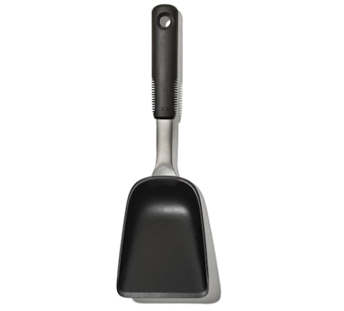 Extra-wide with tapered sides, this black scooper can scoop up larger quantities of food at once — you can easily use it to serve dishes, too. The tool is made from heat-resistant nylon with a durable edge to scrape off stuck-on food. It’s dishwasher safe.