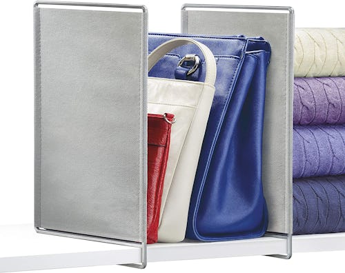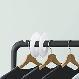 Place these clothing rack dividers between hangers in your closet to organize garments by type, season, or color. The round white plastic disks are easy to hang on a standard closet rod and the 20-piece set comes with a permanent marker so you can clearly label each divider. They’re a cheap but highly effective way to organize a closet so it looks neater. These dividers can also save you time getting ready in the morning.