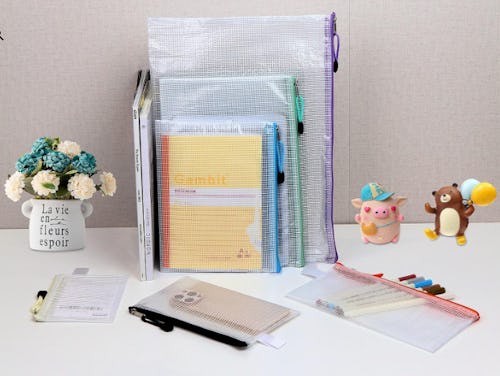 Take your organization to the next level with this 48-piece set of different-sized mesh pouches. The zippered pouches include eight different sizes which are color-coded to help you organize items into categories to help eliminate clutter and confusion. They are also waterproof to protect everything from documents in your home office to hair products while you’re traveling.