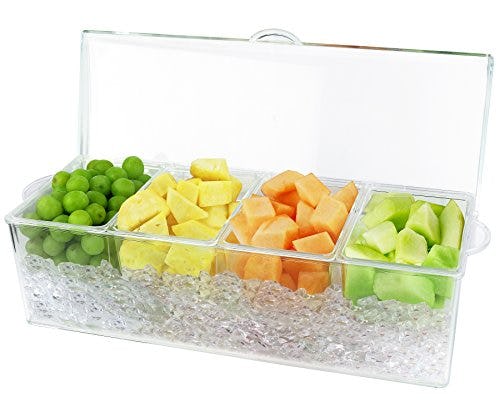 Estilo Condiment Server with Lid, Condiment Organizer on Ice, Clear Container with 4-Section Organizer, Condiment Server Caddy on Ice