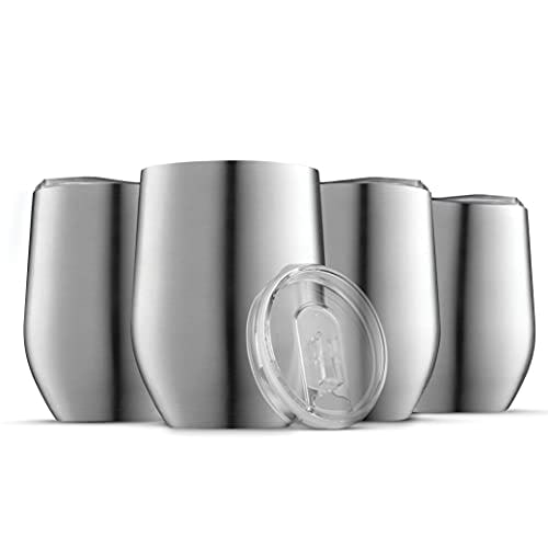 Triple Insulated Wine Tumbler With Lid (4 Pack) 12oz Stainless Steel Wine Glass Set- Insulated Tumblers Keep Drinks Hot & Cold for Outdoors, Beach, Picnics- Unbreakable Wine Glasses With BPA Free Lids