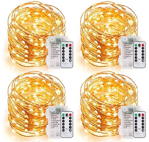 MUMUXI Fairy Lights with Remote Control [Set of 4], 33 Ft 100 LED Battery Operated String Lights | Waterproof & Ideal for Outdoor and Indoor LED Christmas Halloween Lights Battery Powered, Warm White