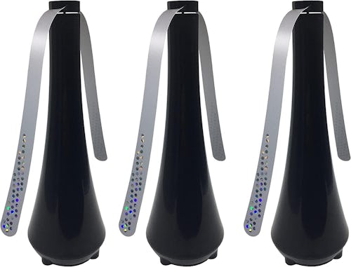 Experience peace from buzzy pests with these table fans. Chemical- and pesticide-free, this fan trio works thanks to holographic dots on the blades that bend sunlight, deterring unwanted guests from your space. Plus, their soft-stop blades ensure safety and portability, making them great for both indoor and outdoor events.