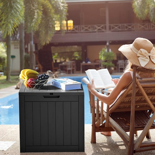 This deck box that discreetly stores your outdoor necessities