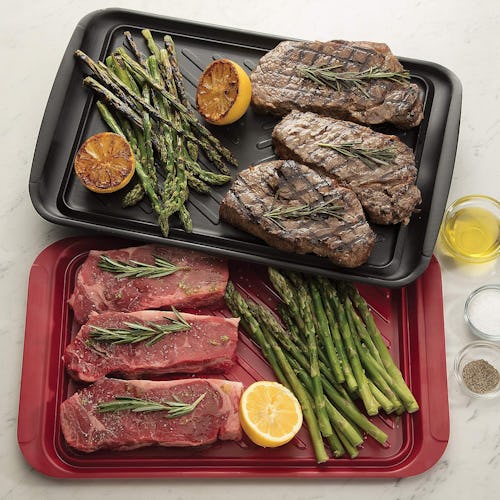 Cross-contamination when grilling can be dangerous, making these trays a smart investment. The different colors are a clever way to keep raw proteins separated from cooked ones — and they even nest together to help save space in storage. Once finished cooking, simply toss them into the dishwasher for an easy clean.