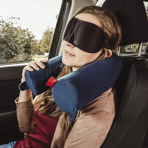 Amazon -Your search for the perfect travel pillow just might end here. Made of cushioned and comfortable memory foam, this pillow is equal parts squishy and supportive. The cylindrical shape makes it easy to loop around your neck to get as comfy as possible, and the ends can be snapped together. A large eye mask is included as well, which makes it even easier to get some rest.