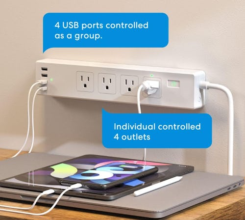 This smart power strip has four AC outlets that you can program and schedule individually from the phone app or your smart home assistant. The result? Lights and appliances on timers and schedules (and lower energy costs). As a bonus, it even comes with four USB ports for charging up devices directly. One Amazon user wrote, “I purchased one of these to put under my bed to control the lamps and everything else on the nightstand. It took minutes to setup, works with the native app, HomeKit, and Alexa. I have not had to think about it since installing and it's worked perfectly.”