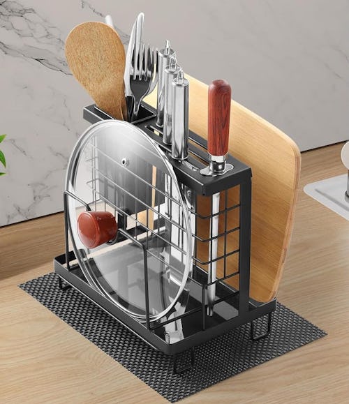 This compact kitchen tool holder is sure to become an MVP in your home in no time. It’s made from sturdy stainless steel and features space not just for knives but for bigger utensils as well. It comes with drainage holes and a removable drip tray for drying and even has slots for storing small cutting boards and pot lids.