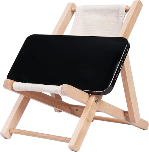 Give your phone the good life with this funny beach chair phone holder. It boasts a wooden frame and a cotton sling and can support your phone both vertically and horizontally for hands-free calling and streaming. It has an adjustable seat height, so you can customize the angle and fold it up flat for storage when not in use.