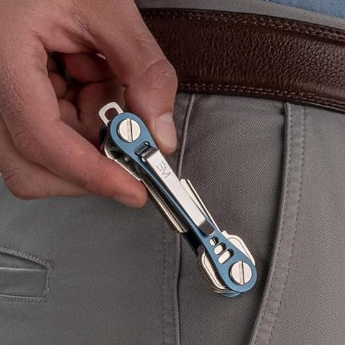 Keep your keys all in one compact place with this key organizer. It holds an impressive 14 keys at once: All you have to do is screw them into the bar and they’ll slide in and out as needed without any noisy clanging in your pocket or backpack. It also comes with a bonus pocket clip to secure it to your trousers.