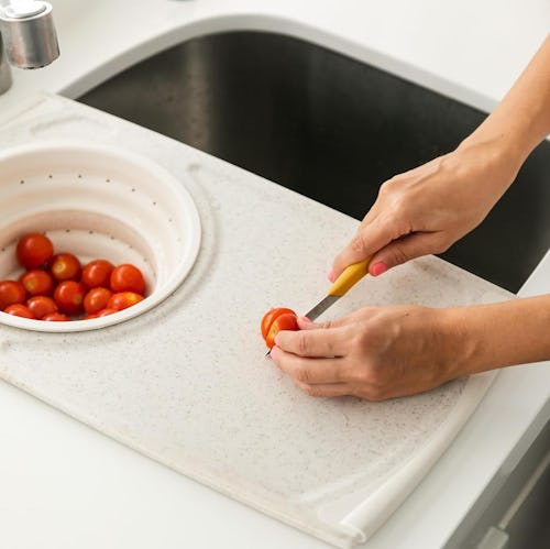 Convenient over-sink cutting board that seriously streamlines meal prep