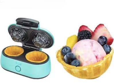 Level up your dessert capabilities with this compact waffle bowl maker. It makes two bowls at a time, and all you have to do is add your batter of choice to the nonstick wells. After just a few minutes, you’ll have the perfect edible vessel for treats of all kinds, complete with that classic crosshatched waffle pattern.