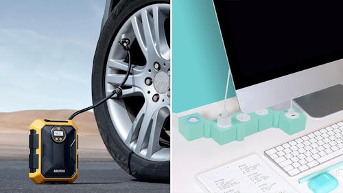 Toss this portable air compressor tire inflator into your car and never be stuck with low pressure again. It comes with multiple adapters and inflation needles, allowing you to pump up pool floats and sporting equipment as well as tires. On the front of the inflator, you’ll find a handy display screen so you can monitor the pressure as you fill.