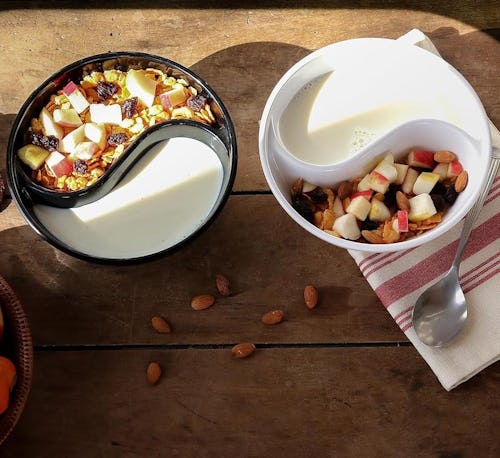 Clever 2-compartment bowls that keep wet & dry ingredients separate