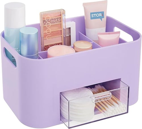 Keep your makeup and skincare essentials organized and in one tidy place with the help of this container. It has four pre-divided compartments on the top shelf that are great for moisturizers, brushes, nail polish, foundations, palettes, and whatever else you’ve got. And it also has a see-through drawer at the bottom for small beauty items like makeup removing wipes, cotton swabs, Q-tips, and more.