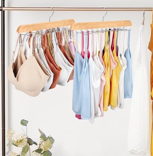 Making the most of your closet is all about using innovative and specialty-designed items to maximize space and storage like this hanger. With 24 hooks to hold 24 pieces of clothing, the hanger was designed to hold onto spaghetti strap tank tops, bras, or dresses. The narrow and curved design ensures the straps stay in place and it has a 360 degree rotating hook for easier access.