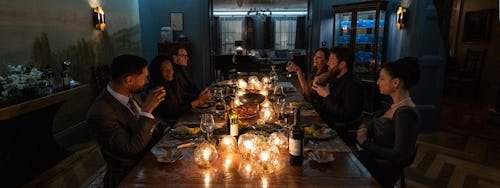 But what really makes Black Bag so fun, more than any other recent spy thriller, is that Soderbergh and Koepp frame it much like a whodunit. The narrative is tight, taking place over little more than a week, while the cast is small, and the action is mostly contained to conference rooms and dinner parties — the aforementioned fancy dinner parties that George and Kathryn frequently host become a central fixture to the narrative. The espionage elements are almost secondary to the dinner-party standoffs, where George narrows down and confronts his suspects, bringing all the cloak-and-dagger elements to a shocking head.