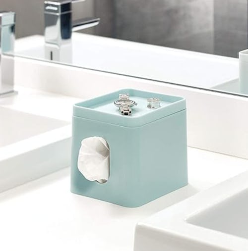 The best home products are ones that serve more than one purpose. This tissue box cover falls into that category since it will not only covers up unattractive packaging, but also has a built-in shelf for you to hold jewelry, keys, and more. It comes in aqua, black, and white in the listing.