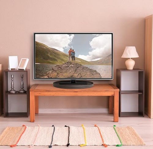 This swivel TV base is made of such rugged and durable materials that it can be used on your outdoor movie nights. Its rubber coating makes it waterproof in addition to nonslip, so that there’s no chance of your projector or laptop losing its balance. It can hold up to 132 pounds and can rotate 360 degrees.