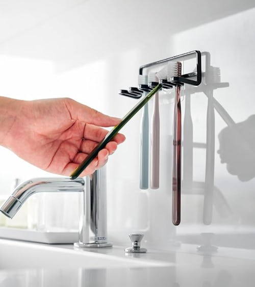 This wall-mounted toothbrush holder will create more bathroom counter space — and it looks nice, too. It can hold up to five tools, including razors. Plus, its adhesive backing sticks firmly to any smooth surface, no drilling required.