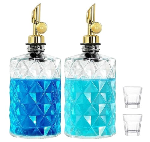 Make your bathroom look nicer instantly with these two glass 12-ounce mouthwash dispensers. They have a diamond design etched into them, auto-flip caps, and nonslip bottoms. They even come with two reusable cups.