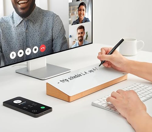 Not only will this desktop whiteboard make your work area look more modern, it will also help you reduce clutter. It opens up to reveal three different compartments to hold pens and sticky notes. A marker and eraser come included.