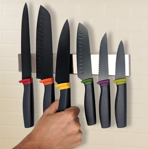 Sticking this magnetic knife holder above your stove or counter will not only give you easier access to any blade that you need, but will also completely change the vibe of your kitchen. It’s 10 inches long and can even support heavy blades like a cleaver. It comes with hardware for installation, but comes in a no-drill version in the listing.