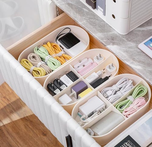 A Lidded Cord Organizer Box That Separates Into 3 Bins