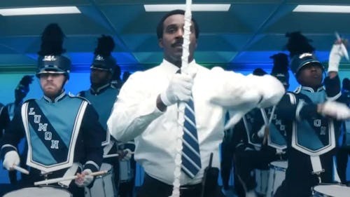 In the Season 2 finale, “Cold Harbor,” Mark makes a shaky alliance with his outie, agreeing to help rescue Gemma from the testing floor and get her out of Lumon altogether. But before he can do that, he has to finish the Cold Harbor file, a process that is celebrated with a visit from the Choreography and Merriment department: a full marching band, complete with Mr. Milchick as a staff-toting drum major.