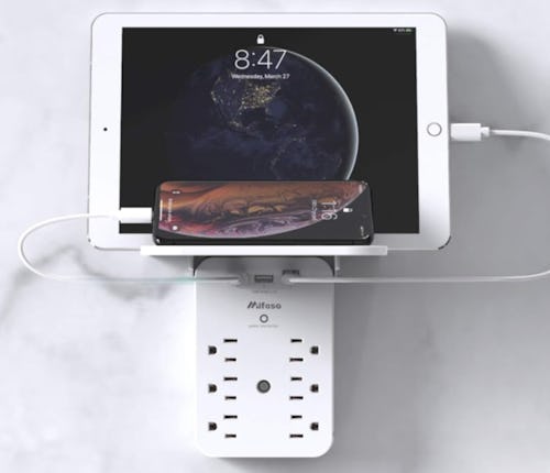 With this outlet extender, not only will you have plenty of places to plug in your devices, but you’ll also have a built-in shelf where they can sit while they charge. Available in your choice of black or white, it includes six AC outlets, two USB-A ports, and one USB-C port, ensuring you have every option you need.